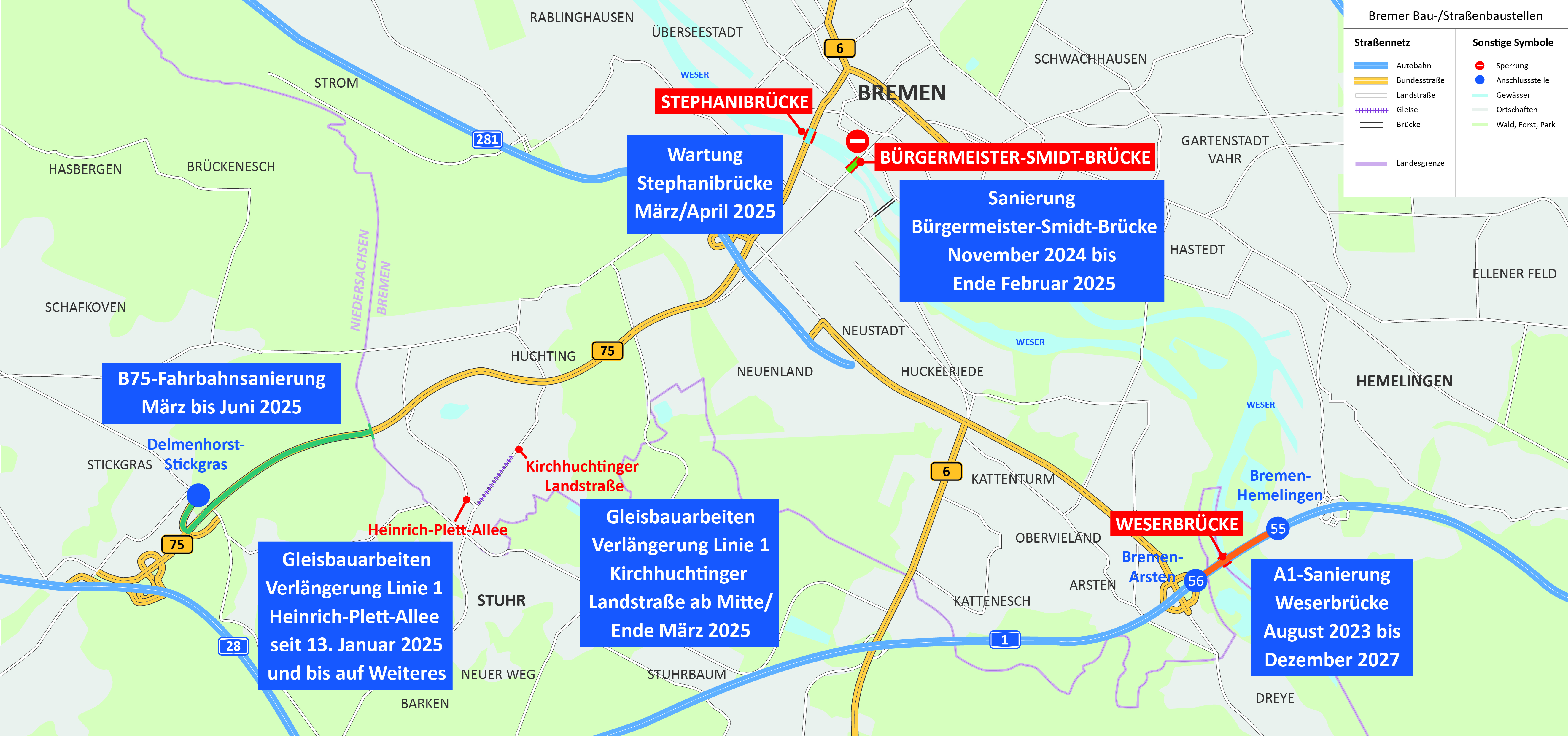 Karte der Baustellen auf den wichtigen Strecken - 2025Dokumententyp: Informationsmaterial und Broschüren