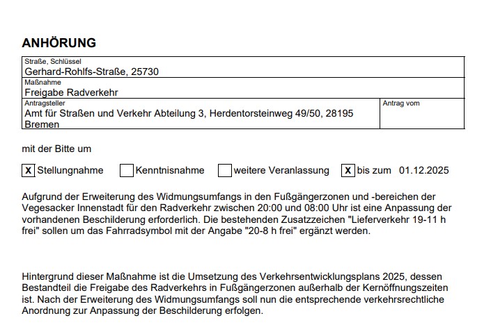 Anhörung Fußgängerzone Vegesack Dokumententyp: Berichte und Konzepte